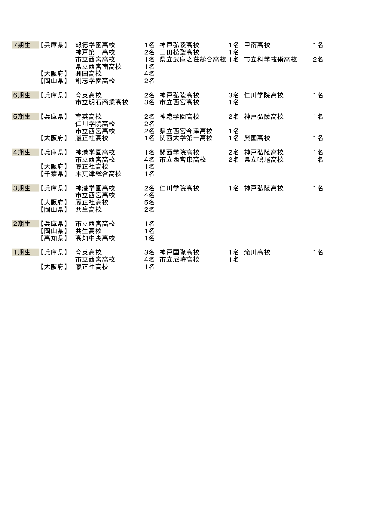 甲南高等学校       1名   東灘高等学校       1名